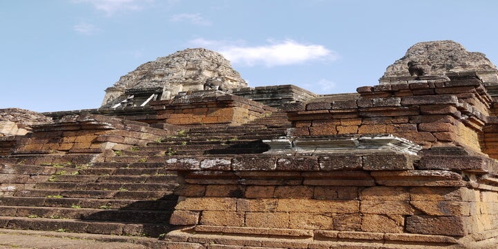 In der frühen Zeit der Khmer-Kultur spielten Backsteine eine bedeutende Rolle in der Architektur. Ton bzw. Lehm - der Rohstoff für die Herstellung von Backsteinen - war reichlich vorhanden. Am Beispiel von Preah Ko aus dem 9. Jhd. kann man die Bauweise sehr gut nachvollziehen: Die Backsteine wurden ohne Mörtel verlegt - vermutlich verklebt mit einem pflanzlichen Bindemittel - was einen dichten und kompakten Baukörper ergab. Die Oberfläche wurde dann verputzt bzw. mit Kalkstuck versehen und mit aufwändigen Ornamenten bis hin zu bildhauerisch gestalteten Reliefs verziert. Besonders interessant ist die Bearbeitung des fast monolithisch anmutenden Backsteins vor dem Stuckauftrag: An den gestalteten Bauteilen wie Türstürzen oder Säulen wurde die grobe Form bildhauerisch aus den Backsteinen herausgearbeitet und anschließend mittels Stucktechnik verfeinert. Dabei zeigt sich eine gestalterische Differenzierung an den Tempelfassaden: Während an den Rückseiten die Zierteile aus dem beschriebenen Stuck gefertigt wurden, kamen an der Schaufront Türeinfassungen und Stürze aus dem "edleren" und aufwändiger zu bearbeitenden Sandstein zum Einsatz. Besonders bemerkenswert an den Stuckornamenten ist ihr heutiger Zustand. Auch wenn nach 1100 Jahren große Bereiche beschädigt oder abgefallen sind, zeigen die vorhandenen Mörtel eine beeindruckende Qualität hinsichtlich Gestaltung und Haltbarkeit